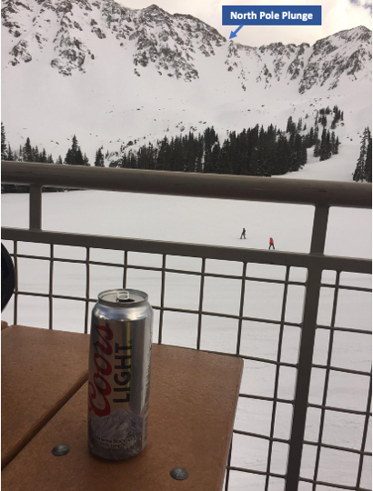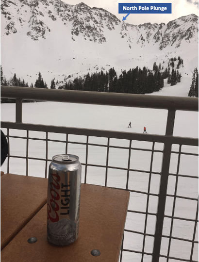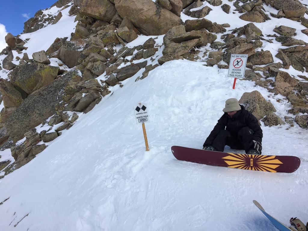 OK, so things we’re looking better. I’d have my own personal mountain guide, albeit one who’d never heard of North Pole Plunge. I didn’t tell her its other name. Arriving at A-Basin’s parking lot, we took the chair to midway, and then immediately caught the Lenawee lift to the very top. And started hiking.