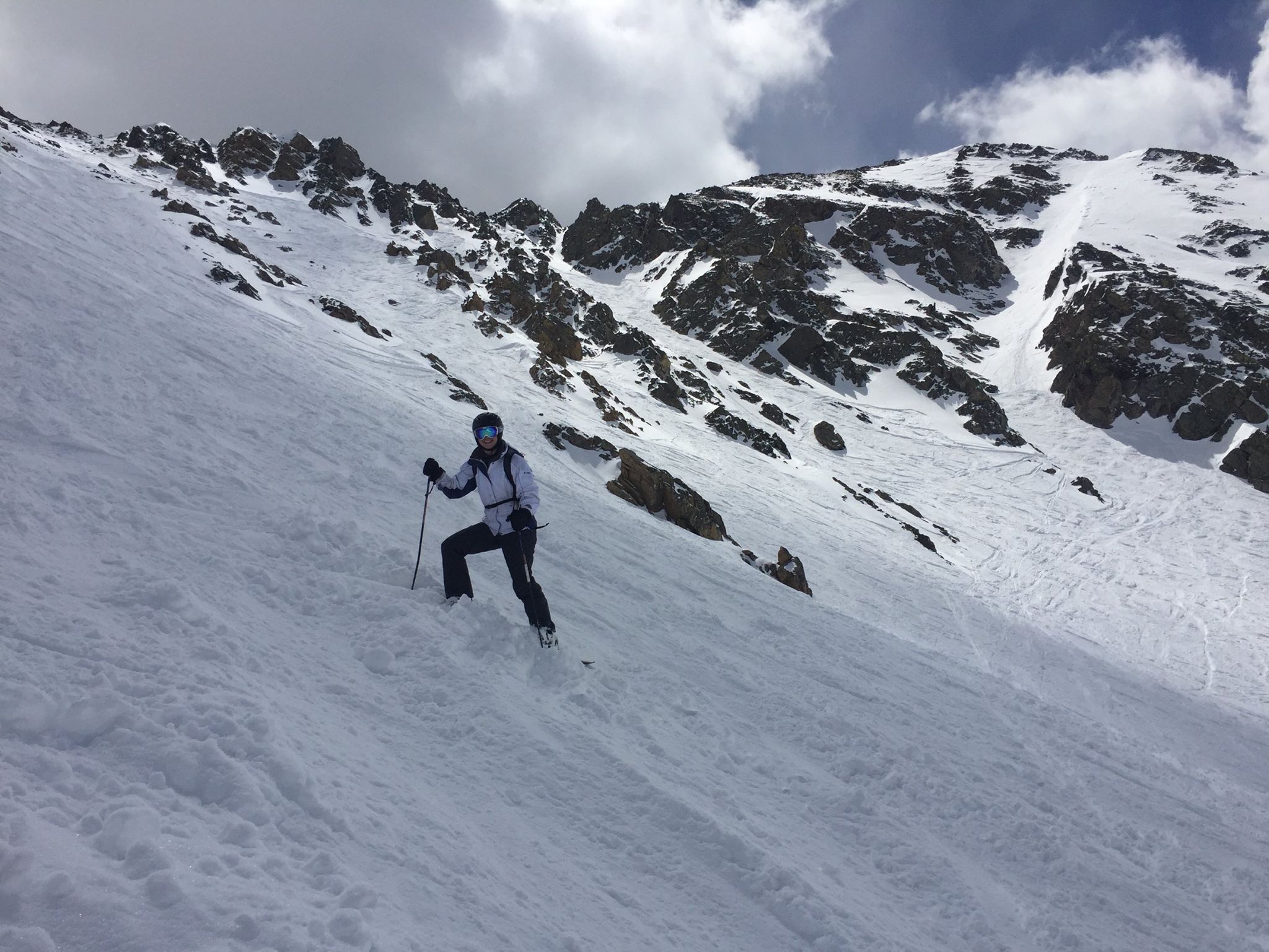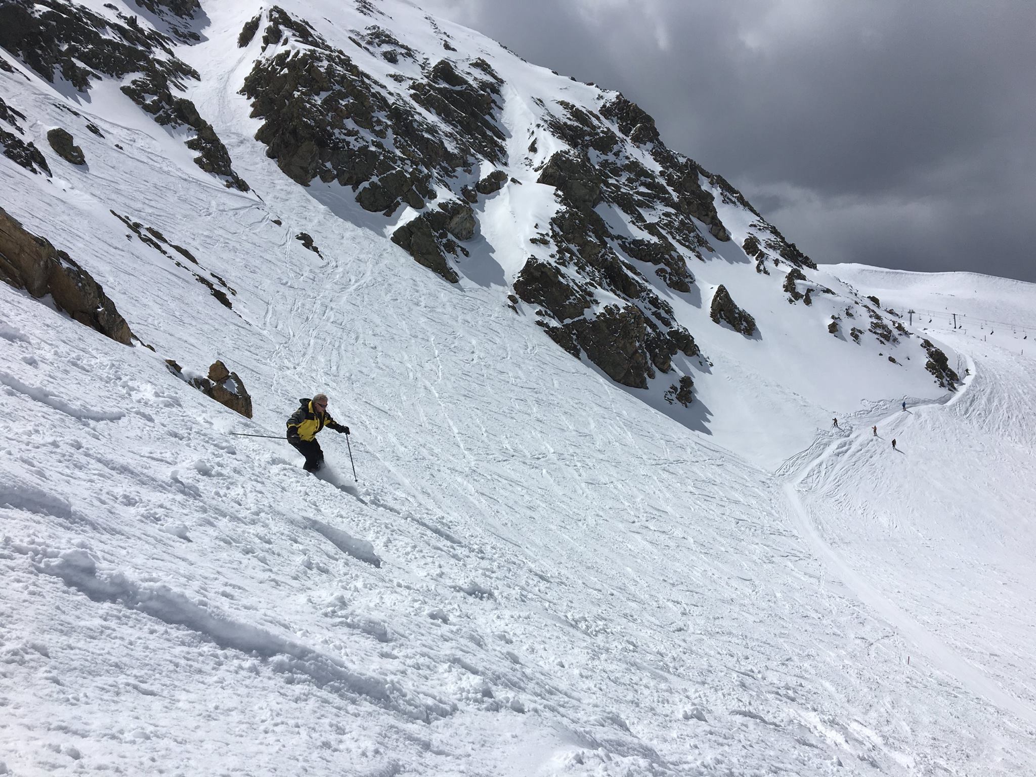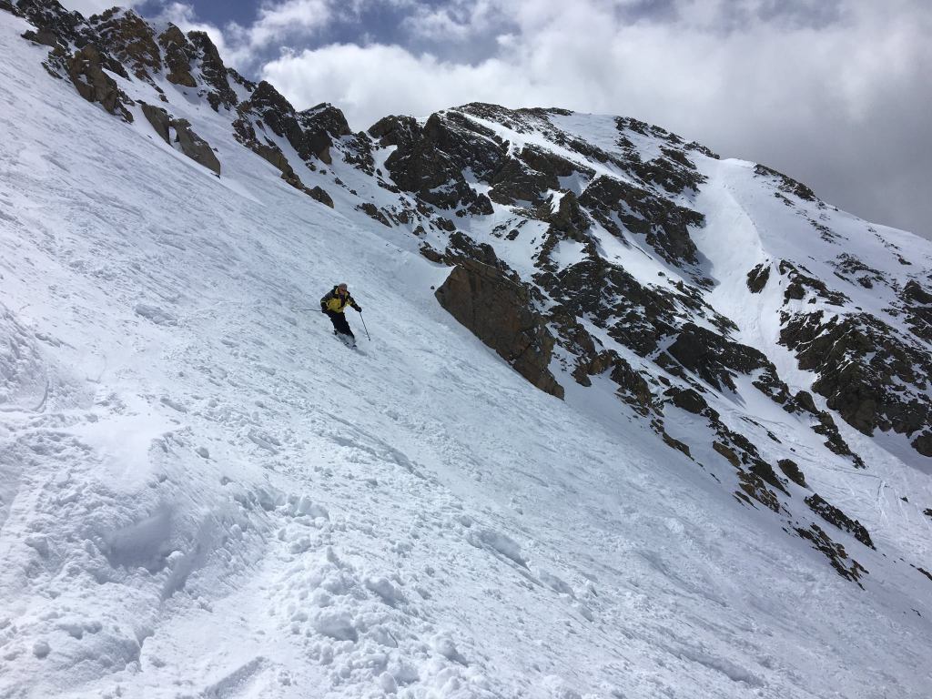 “It’s one of the chutes that comes down off that ridge that overhangs A-Basin. You have to hike up and around it, and then ski back down.”